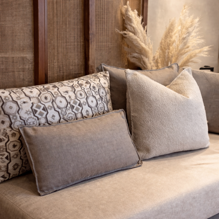 Coussin décoratif bouclette à motif décoratif taupe 50x50cm
