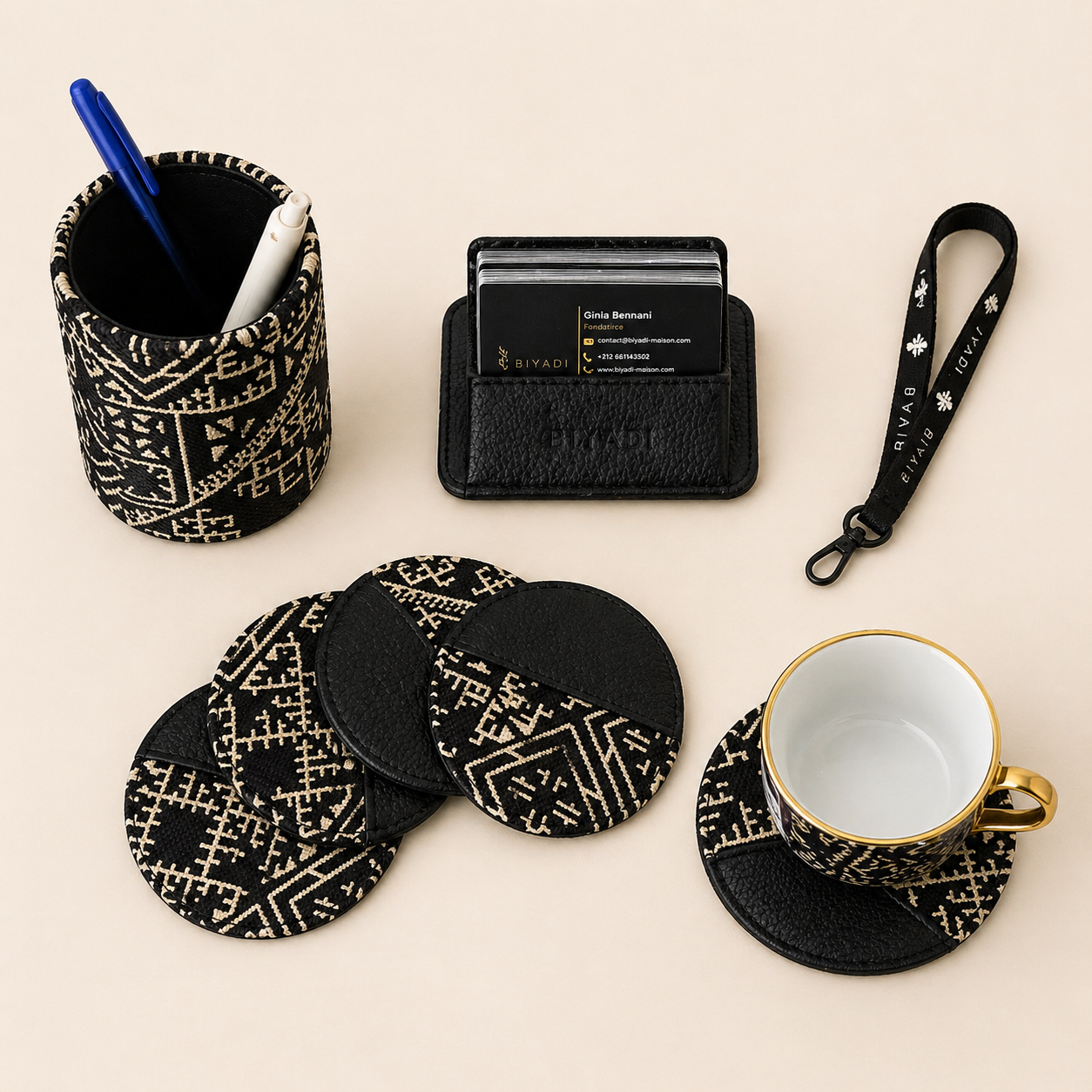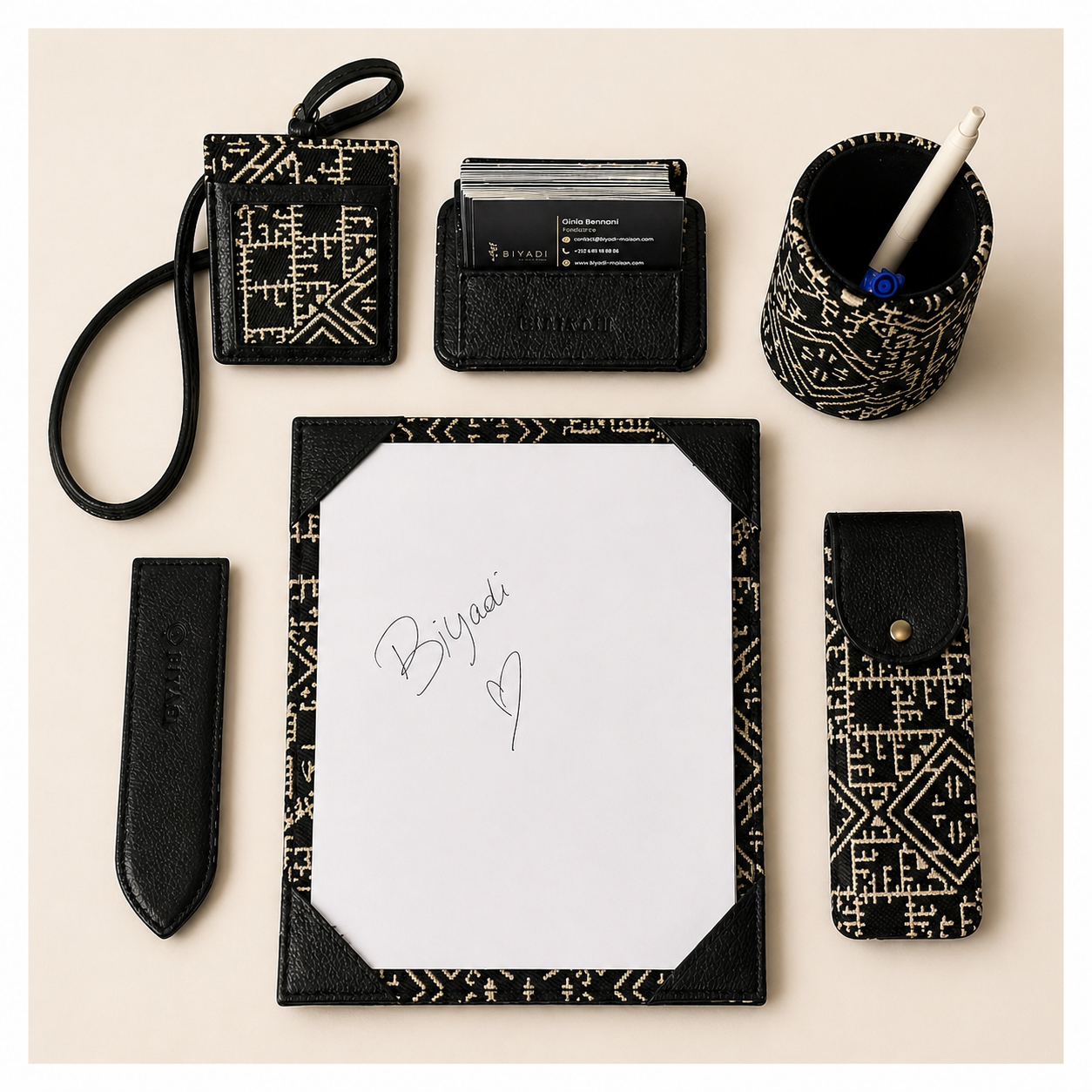 Je découvreUn coffret professionnel alliant véritable cuir, accessoires fonctionnels et détails inspirés du Tarz marocain, conçu pour offrir une expérience premium et valoriser votre image de marque.